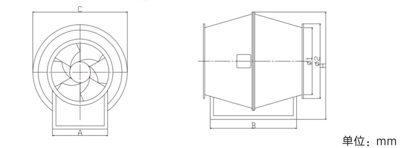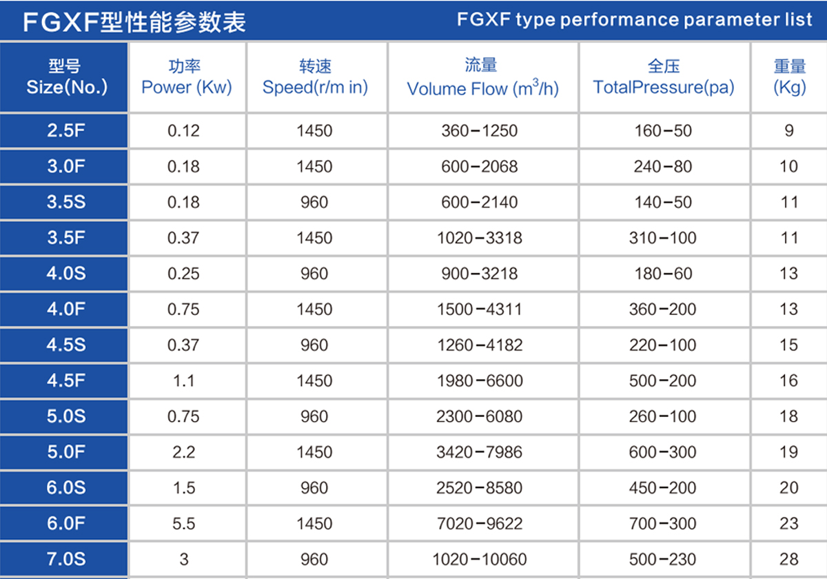 FGXF type GLASS fiber reinforced plastic obligue flow fan is a drum structure, its small inlet and outlet characteristics speed up the air flow, high pressure coefficient. The flow rate and pressure of the fan are greater than those of the general axial fan. This series offans replace low-pressure fans, energy saving investment and occupation, simplified design, safe installation. In the case of pipe ventilation where the axial flow fan pressure cannot be satisfied, the inclined flow pipe fan is the best choice. With light weight, good corrosion resistance, not easy to aging, low noise characteristics. Widely used in industrial and mining enterprises, hotels, museums, gymnasiums, chemical industry, laboratories, environmental protection equipment and other places of pipe pressure, exhaust air use. The delivered gas is not allowed to contain viscous substances, dust and hard particles ≤150mg/m³ ,the gas temperature ≤60℃,relative humidity ≤100%.