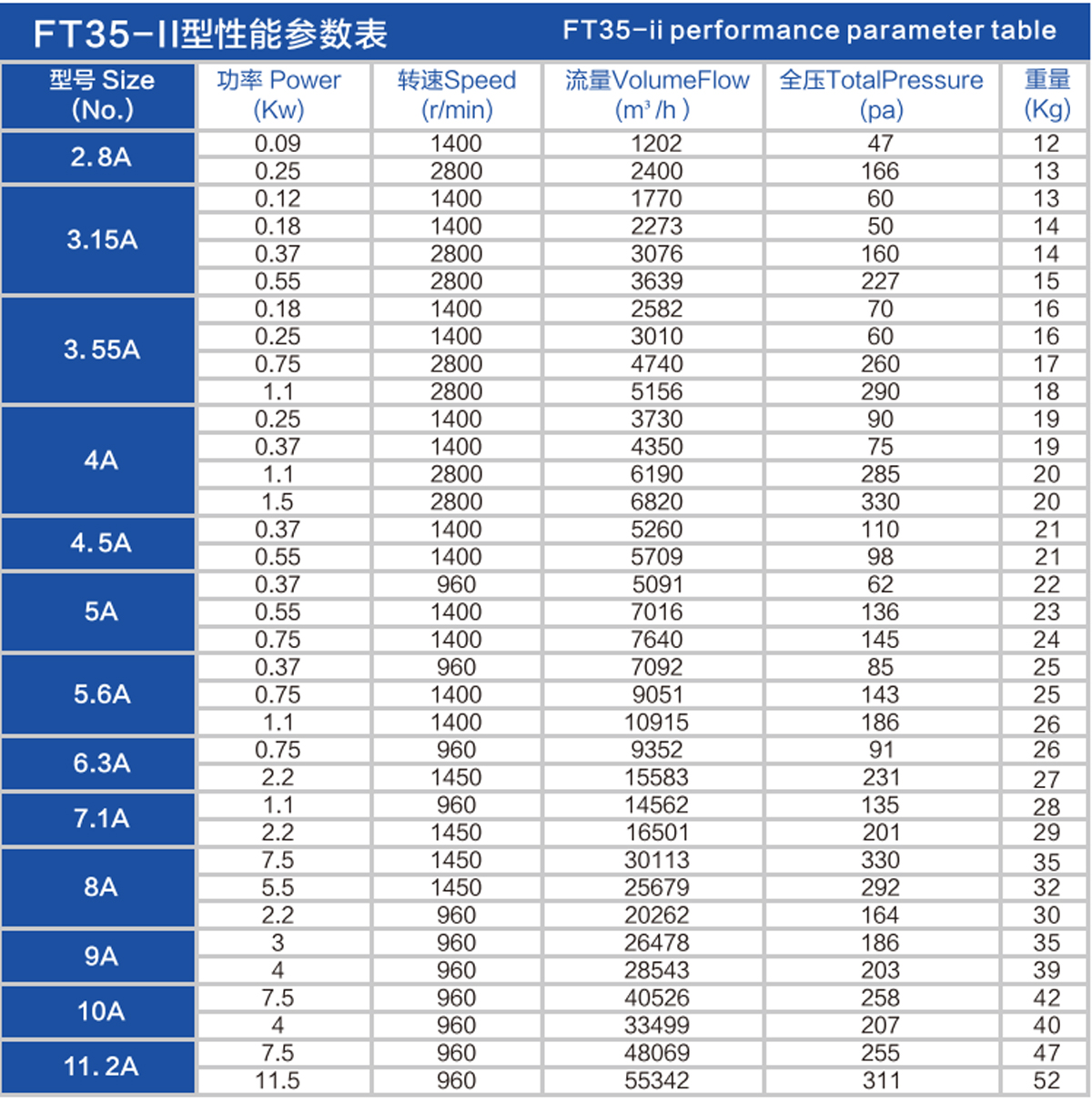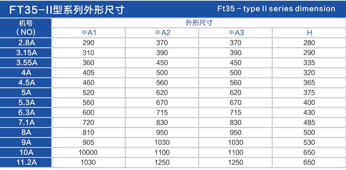 FT35-II Performance Parameter Table